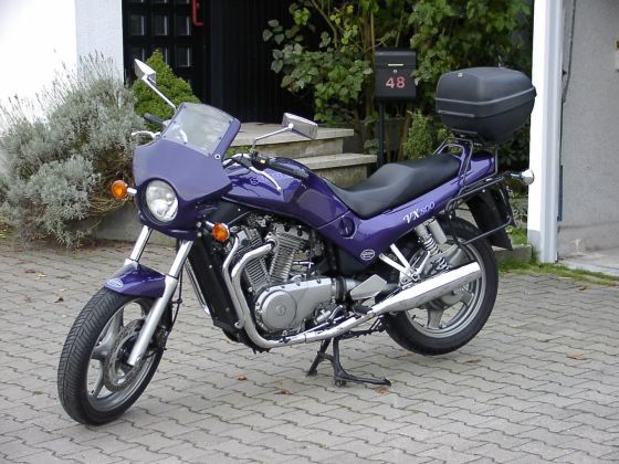 Suzi-Lenkerverkleidung, Krauser-Koffer, Topcase, Schutzbügel, Wirth-Gabelfedern, Stahlflex v/h